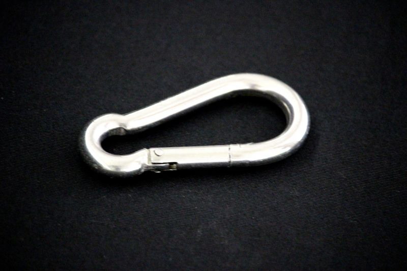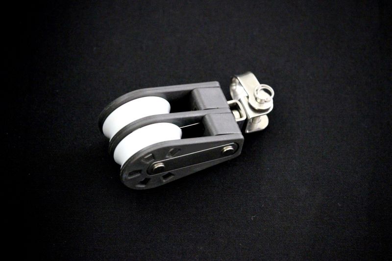 Eine Belegklampe aus dem Yachtbereich ermöglicht die Fixierung der Spannseile.